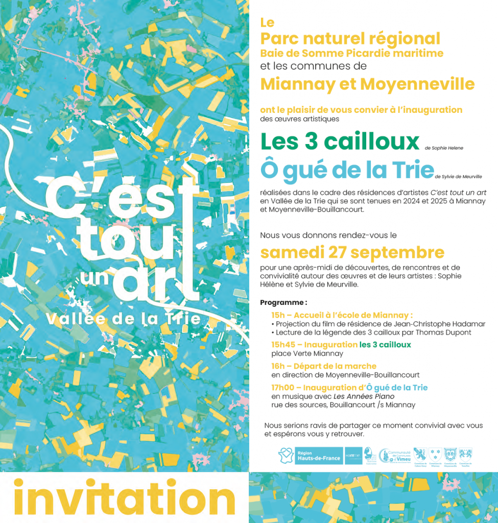 Le 27 septembre 2025, de 15h à 18h, inauguration des 2 premières oeuvres commandées par le Parc naturel de la baie de Somme et réalisées dans le cadre de résidences d’artistes « C’est tout un art » :